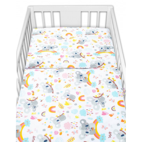 Baby Nellys 3-dielna sada Mantinel s obliečkami - Koala a dúha, biela, 135x100 cm