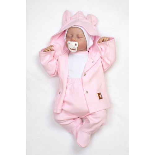 Rebrovaná sada, Star 5D, body, polodupačky, kabátik, čiapka, rukavice - rúžová, biela,68