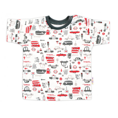 Tričko, krátky rukáv + kraťasky, 2D, Baby Nellys, Autá, bavlna, smotana/sivá