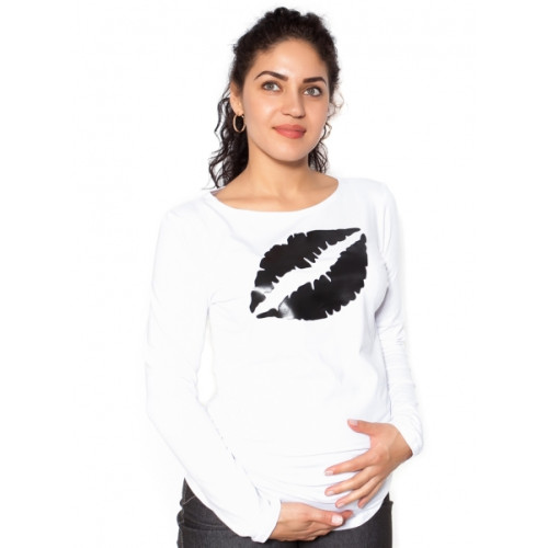 Be MaaMaa Tehotenské tričko dlhý rukáv Kiss - biele