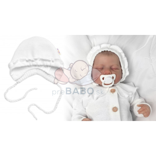 Pletená čiapočka na zaväzovanie bonetka Girl, Hand Made Baby Nellys, biela