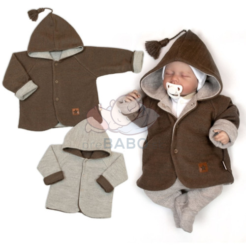 Pletený detský kabátik/bundička s kapucňou Star, obojstranný - hnedý, béžový, veľ. 68