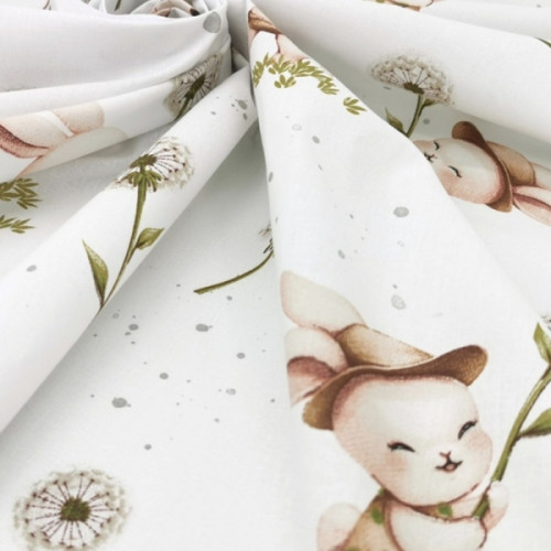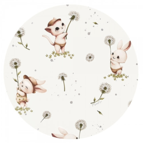 Mantinel s obliečkami do postieľky, 3D sada Bavlna, Kocúrik a púpava - biela