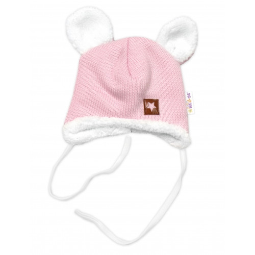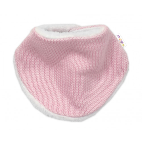 Baby Nellys Pletená zimná čiapka s kožúškom a šatkou Star, ružová, veľ. 80/86