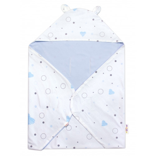 Zavinovacia deka s kapucňou, bavlna + jersey, I love Boy Baby Nellys, modrá