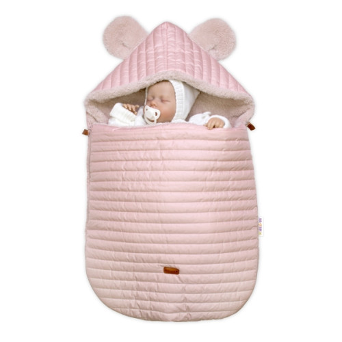 Prešívaný fusák 2v1 s kapucňou a luna podšívkou Made with Love, pudrovo ružový