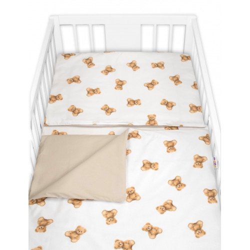 Mantinel s obliečkami do postieľky, 3D sada Bavlna, Míša - biela s potlačou