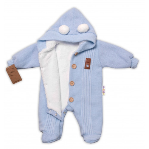 Baby Nellys Pletená kombinéza/overal LUX STAR s kožúškom, dvojvrstvová, sv. modrá
