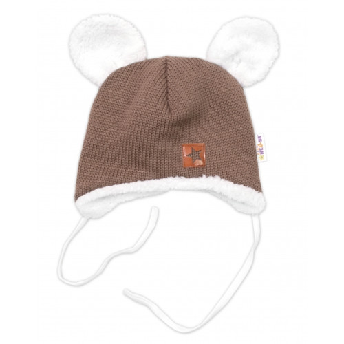 Baby Nellys Pletená zimná čiapka s kožúškom a šatkou Star, hnedá, veľ. 68/74