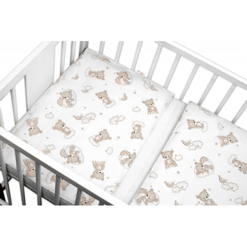 Sada do postieľky Mantinel s obliečkami, 3D sada - Malý Macko, biela/béžová