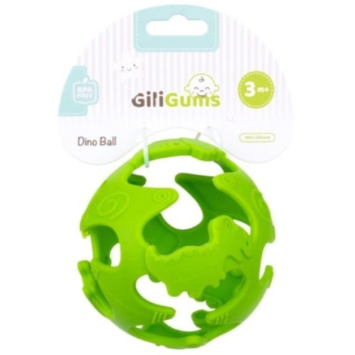GiliGums Silikónové hryzátko Loptička, Dino - zelené