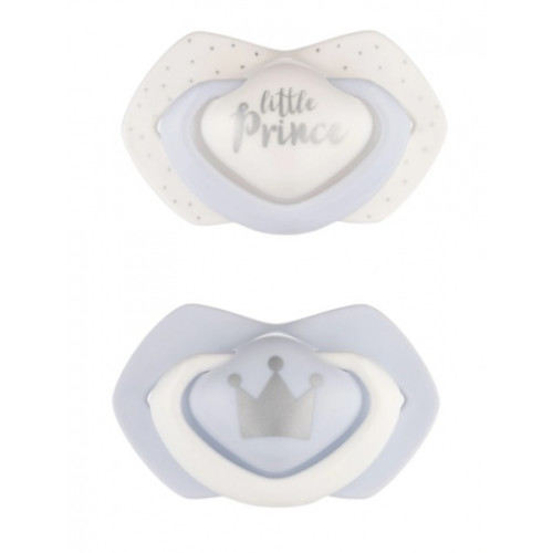 Canpol Babies Sada 2 ks symetrických silikónových cumlíkov, 0-6m +, Little prince, modrá
