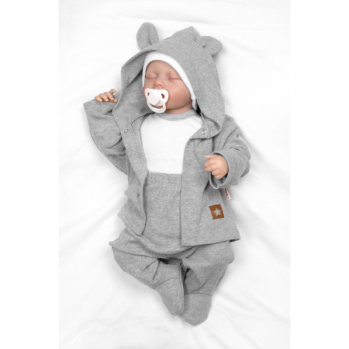 Rebrovaná sada, Star 5D, body, polodupačky, kabátik, čiapka, rukavice - sivá, biela, 68