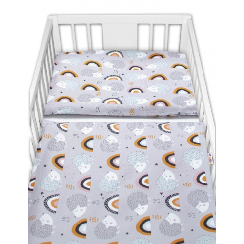 Baby Nellys 3-dielna sada Mantinel s obliečkami - Ježek a dúha, sivé