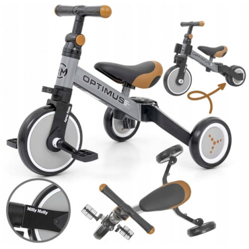 Balančná trojkolka, bicykel, odrážadlo Milly Mally, Optimus 3 v 1, sivá