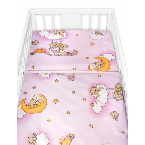 Mantinel s obliečkami Premium, Baby Nellys, 3D sada, Medvedík na rebríku, ružový