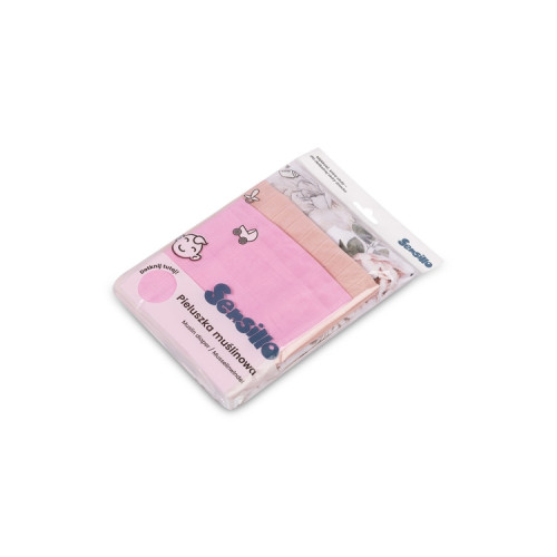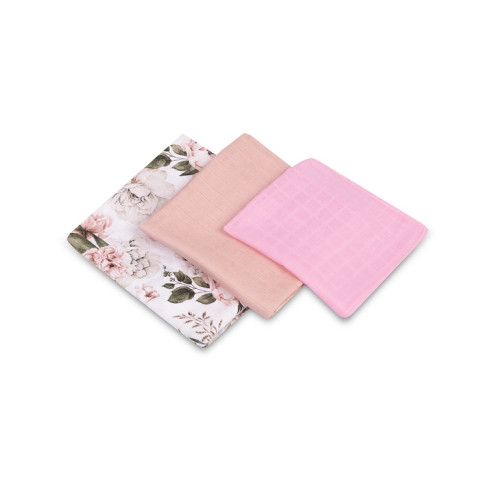Mušelínové plienky 3 ks - sada rôznych veľkostí - Kvety ružové