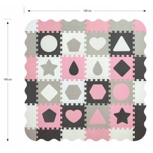 Pěnové puzzle, podložka, Shapes, ružová, 36 dílků