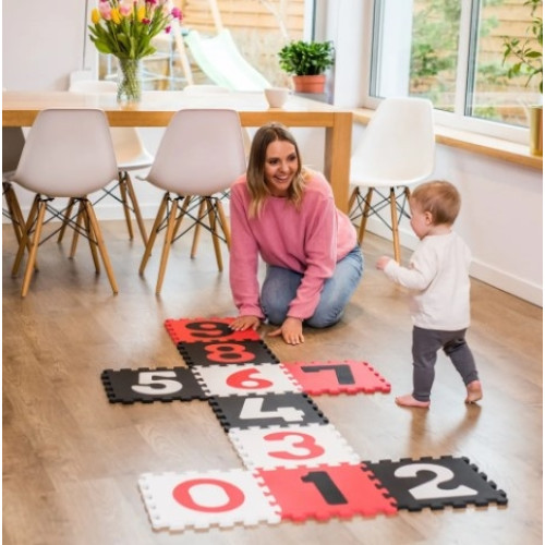 Penové puzzle - Čísla, 10ks, čierna / červená / biela