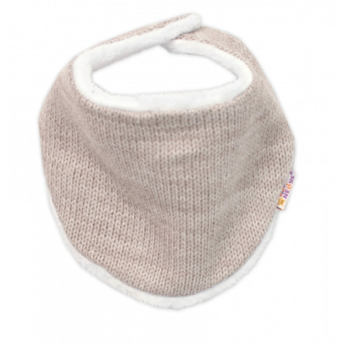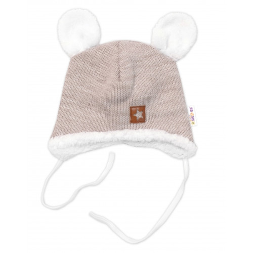 Baby Nellys Pletená zimná čiapka s kožúškom a šatkou Star, béžová