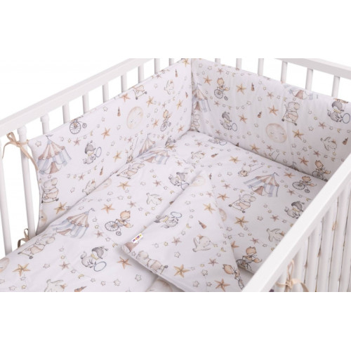 Mantinel s obliečkami, bavlna, 3D sada, Cirkus, Baby Nellys, biela/béžová