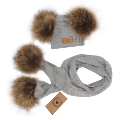 Z & Z Zimná čiapka s brmbolcami z kožušinky s šálou 2V1, sivá