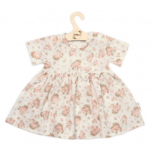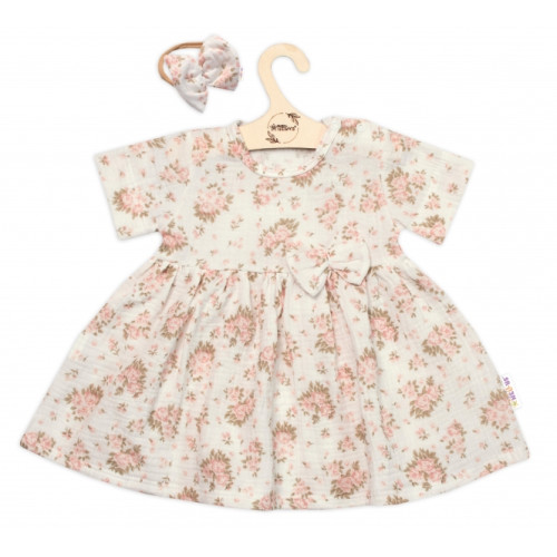 Mušelínové šatôčky + čelenka 2-dielna sada Pivonky, Baby Nellys, smotanové, veľ. 98