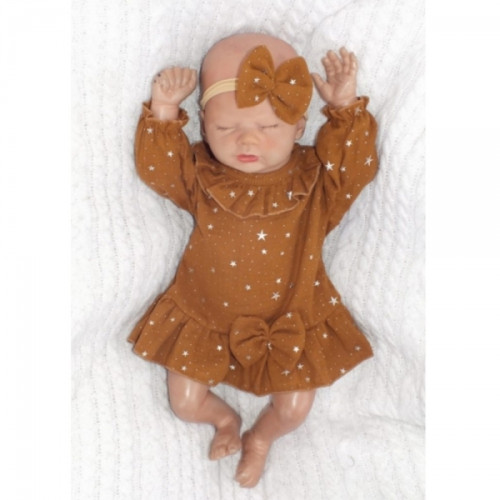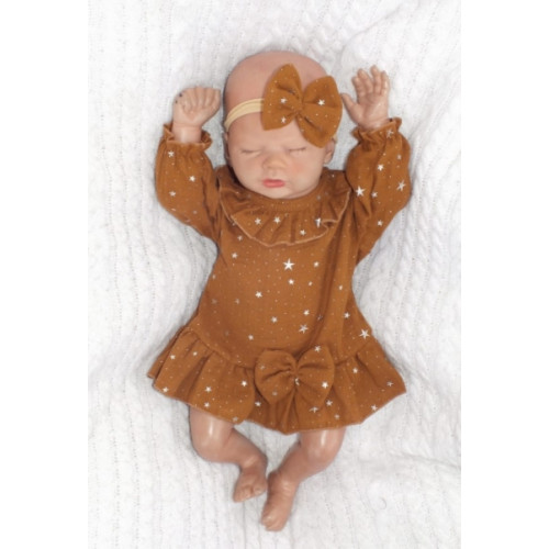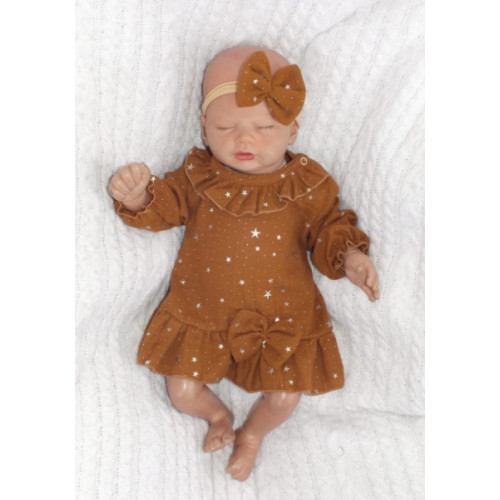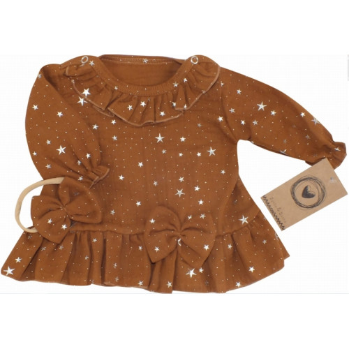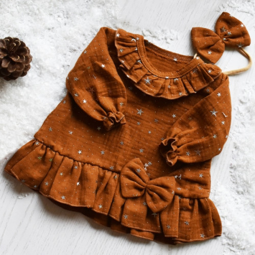 Mušelínové šatôčky s hviezdičkami + čelenka Z&Z, škoricová