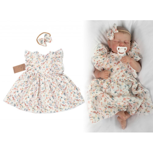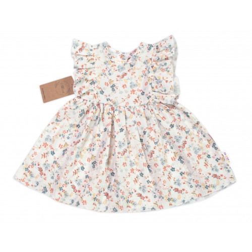 Mušelínové šatôčky + čelenka 2-dielna sada Lúčne kvietky, Baby Nellys, smotanové, veľ. 104