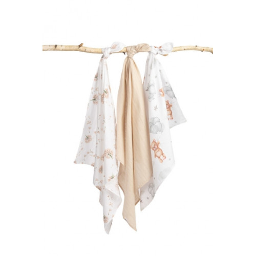 Mušelínové mäkké plienky LUX, 3ks, Bear, biela/béžová