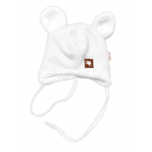 Baby Nellys Pletená zimná čiapka s kožúškom a šatkou Star, biela, veľ. 68/74