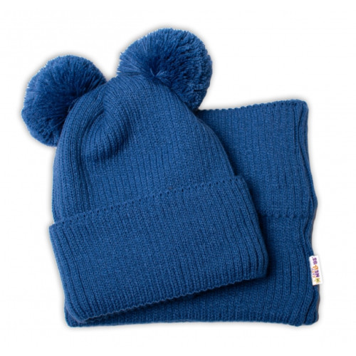 BABY NELLYS Zimná pletená čiapka + nákrčník - granát s brmbolcami