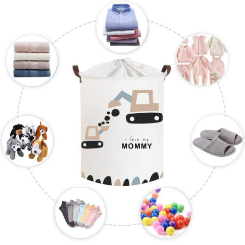 Kôš na hračky, uzatvárateľný, bavlna - Trucks Love Mommy - biely, 43 L