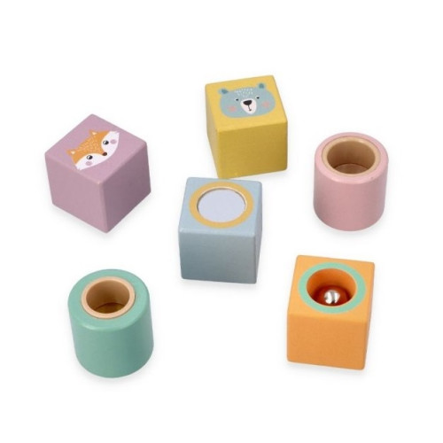 Adam Toys Farebné, drevené kocky s rolničkou Zvieratka