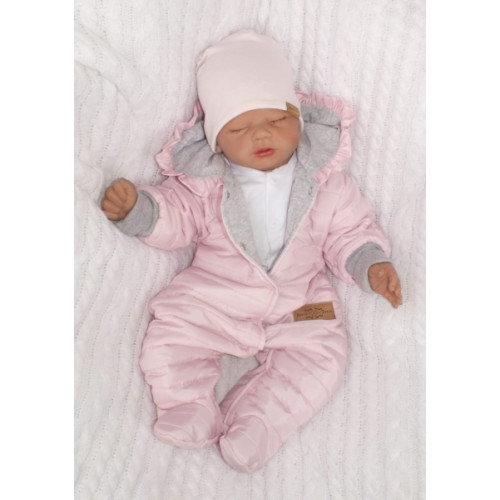 Z&Z Prešívaný dvojvrstvový overálok s kapucňou a volánikom, sv. ružový, veľ. 74
