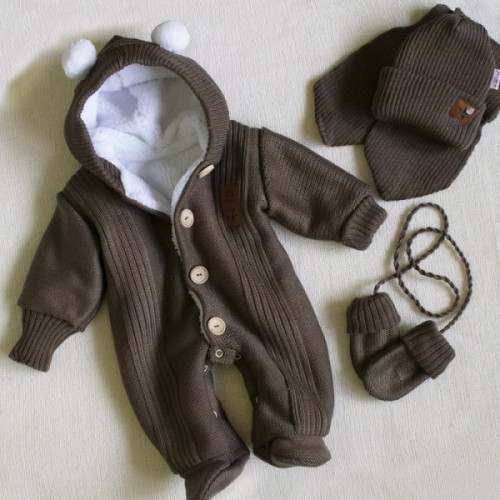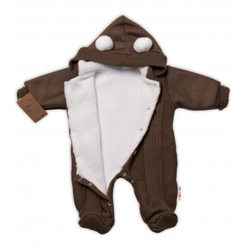 Baby Nellys Pletená kombinéza/overal LUX STAR s kožúškom - dvojvrstvová, hnědá