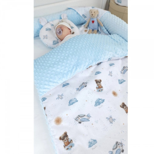 Obojstranná deka, Bavlna/Minky 100 x 75 cm, Méďa pilot - biela, modrá