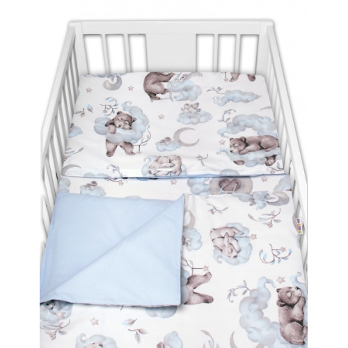 3-dielna sada mantinel s obliečkami Baby Nellys, Zvieratká na mráčiku, modrá,135x100 cm