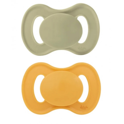 Cumlík, silikón, symetrický, 2ks, Lullaby Planet, 0-6m, oliva/horčica