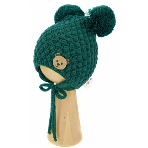 BABY NELLYS Zimná pletená čiapka Teddy Bear na zaväzovanie, zelená, 68/80, (6-12m)