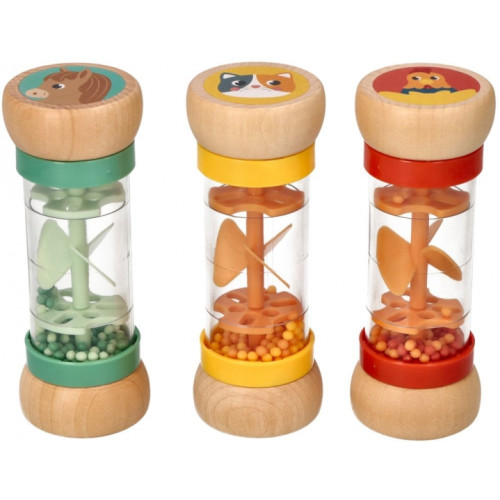 Drevená hrkálka / dažďová sprcha s guličkami, Koník - mätové